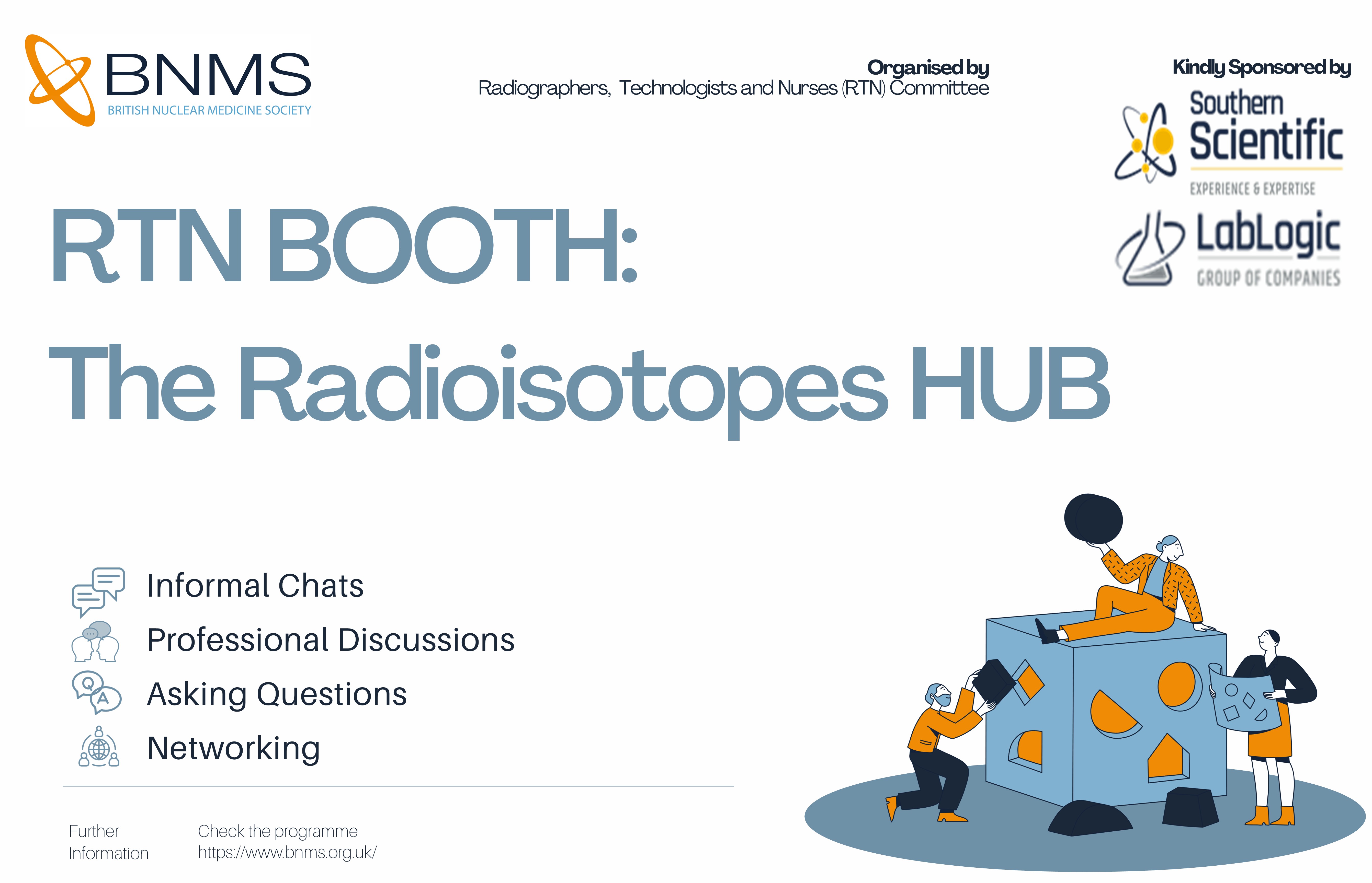 The RTN booth, also known as The Radioisotopes Hub, is an initiative to facilitate informal professional discussions between Nuclear Medicine experts and BNMS attendees during the Spring Meeting.