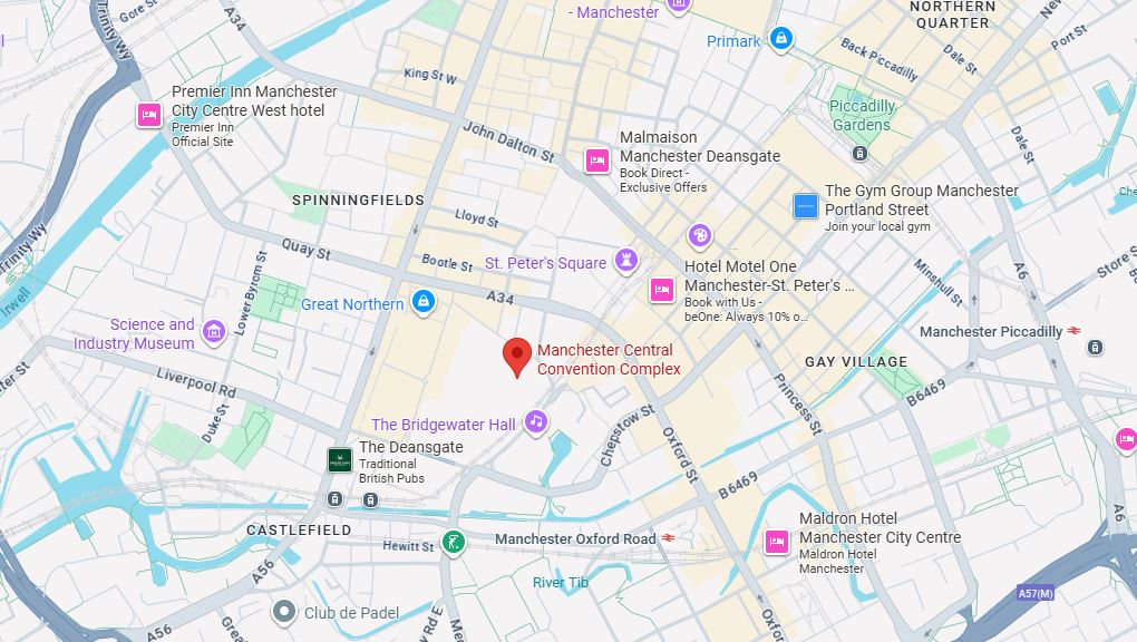 Manchester Central is a 20 minute walk from Piccadilly Station or just five minutes by taxi. Alternatively, catch a connecting train to Oxford Road Station - just five minutes from Manchester Central on foot. Visit the National rail website here