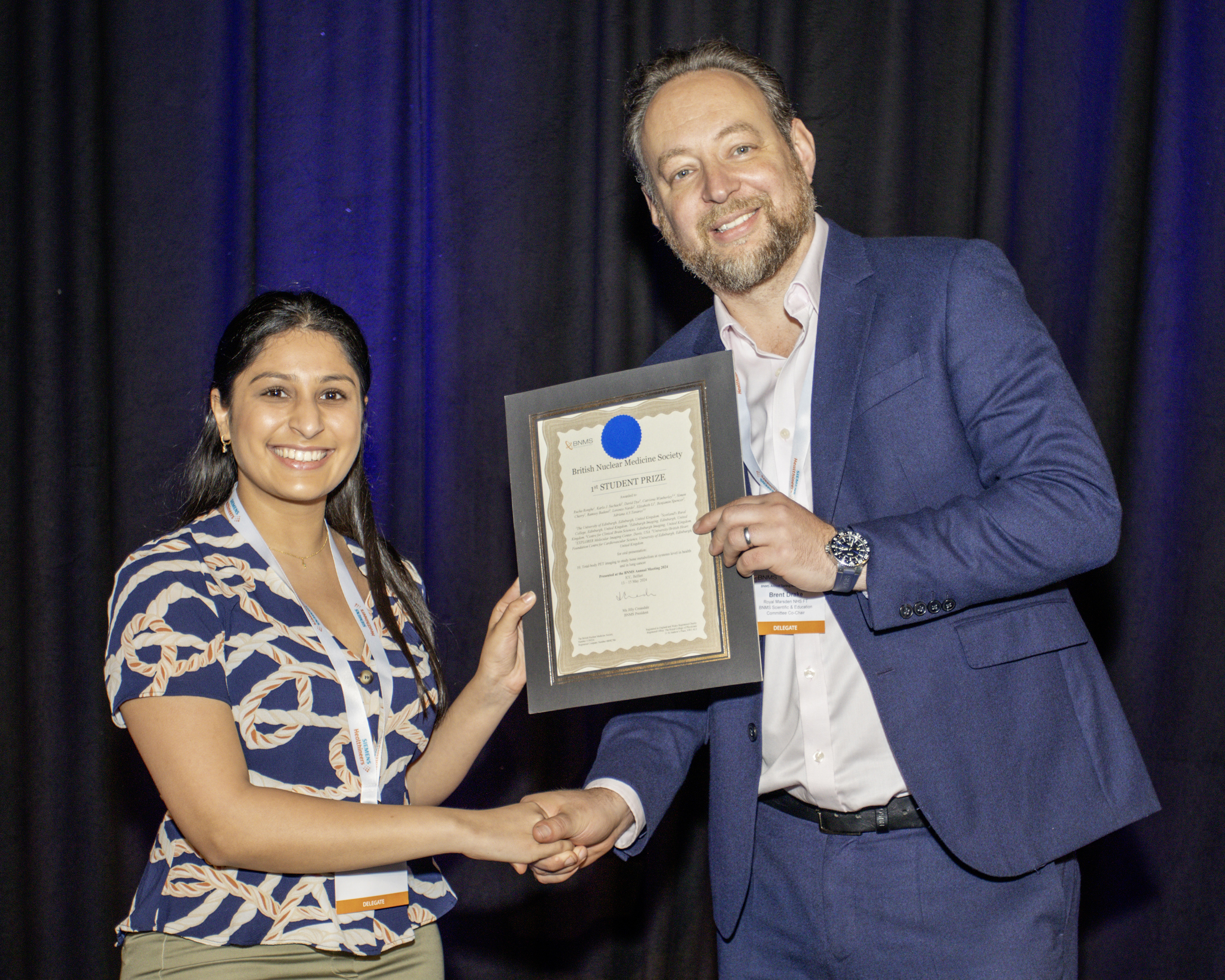 Physics Prize Sponsored by IPEM ![]() Oral Prize of £300 awarded to: Lenka Vávrová1,2,3, Jan Taprogge2, Dominic Rushforth2, Glenn Flux2, Iain Murray2 1St. George’s University Hospitals NHS Foundation Trust, Tooting, United Kingdom. 2Royal Marsden NHS Foundation Trust and Institute of Cancer Research, Sutton, United Kingdom. 3King’s College London, London, United Kingdom No. 60 “Machine learning for the prediction of radioiodine ablation outcome in differentiated thyroid cancer"